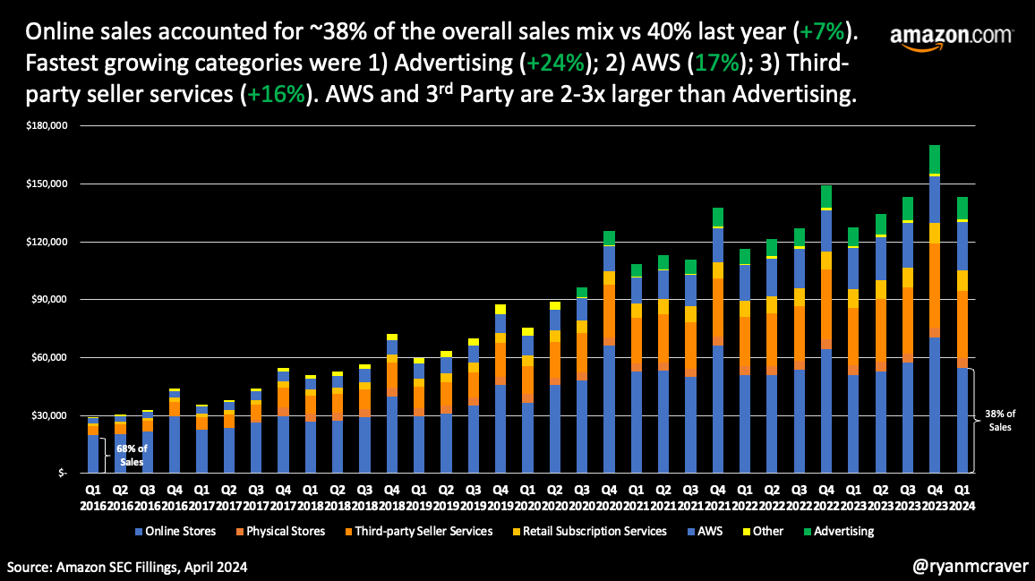 Another quarter in the books with Amazon announcing their Q1 2024 earnings this evening. A few takeaways along with some credit card spend data and a look to Amazon Prime: